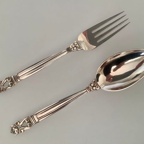 Dobbeltriflet bestik fra Georg Jensen i meget flot stand. Alle dele er i sterling sølv. Jeg sender gerne godt indpakket mod porto kr. 50.