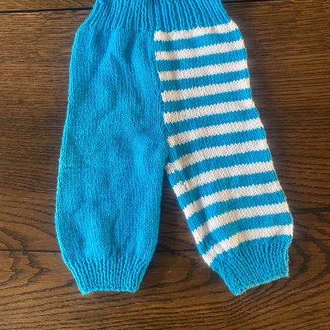 Bukser, Strik, str. 68, "NY" lækker/fine håndstrikket strikbukser m/blonde og silke bånd i ben str. 4 mdr. 50% uld 50% akryl, prisen er fast
