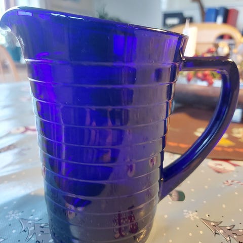 Glas, Glaskande med røde striber, Holmegaard / Broksø, Glaskande i meget fin stand, mat glas med røde striber.