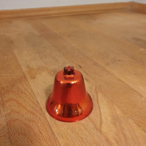 2 flotte juleklokker i metal, sandsynligvis forsølvede. Der står JUL med en stjerne over på den ene side, og der er en engel på den anden side.
