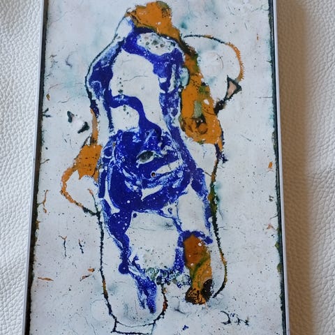 Andet, Jennet Noormagi, motiv: Abstrakt, stil: Abstrakt, b: 30 h: 20, Emalje på kobber, 30x20cm. Jennet Noormagi (1903-1988) er også kendt under en række andre navne og stavemåder som eksempelvis Eugeni, Eugenie Hansen, Jenny og Henni Noormägi.