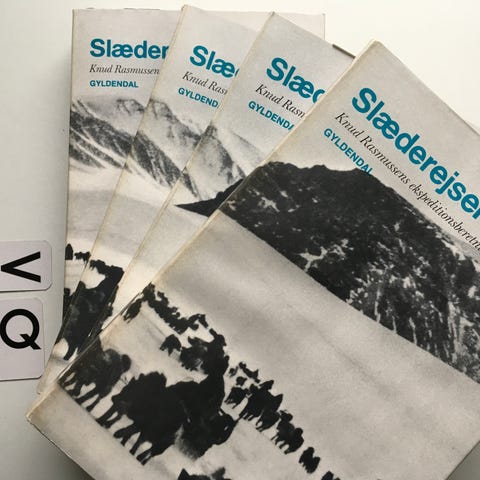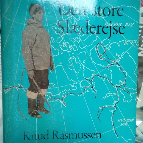 Den store slæderejse, Knud Rasmussen, emne: historie og samfund, Beretningen om den længste færd, der nogensinde er foretaget med hunde og slæder. Fra Grønland langs Ishavet om Canada til Alaska og Sibirien i årene 1921-24. Knud Rasmussen forener i denne fantastiske rejsebog en opdagelsesrejsende, en videnskabsmand og en digters egenskaber. Hardback 18x25 cm.