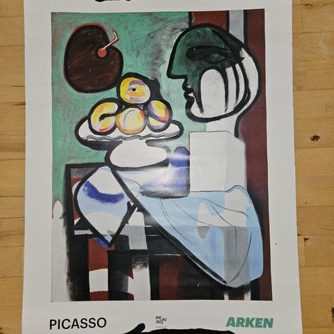 Plakat / tryk, Picasso, motiv: Nøgen kvinde, b: 90 h: 68, Picasso plakat af nøgen kvinde i meget flot træramme med glasfront. Måler 90 x 68 cm. Plakaten har ingen synlige skader og trærammen er pæn med få brugsspor, så rammen alene er prisen værd.
