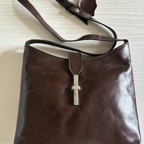 Skuldertaske, TOP LINE, Nedsat, læder i brun med skulder rem og bære håndtag.