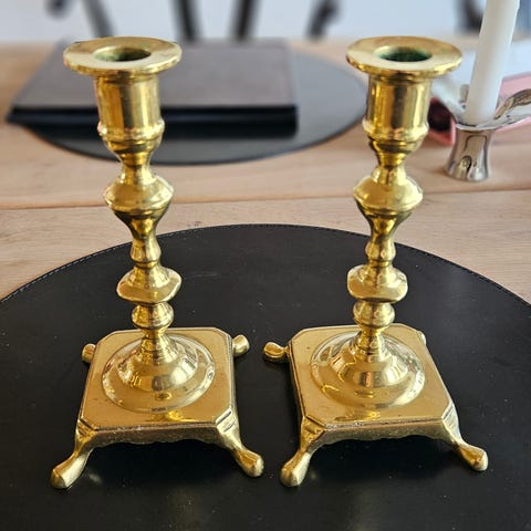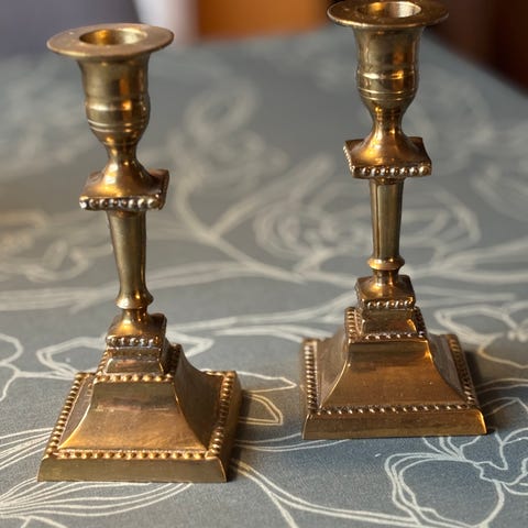 Lysestager, messing, To fine små stager i messing til almindelige kronelys.