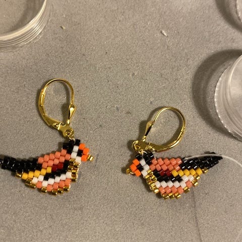 Øreringe, perler, ven_design_cph, Håndsyede Frida Kahlo øreringe i japnske miyukiperler i forgyldt sterlingsølv ring nikkelfri. Kan sendes. Flere farve varianter