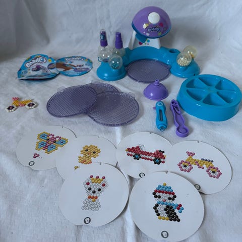 Blæse maskine, 2 runde plader, kugler til brug, 6 skabeloner, brugsvejledning.