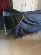 Dækken, Trust Overgangsdækken, Str. 155 cm ca. 100 g. Sælges uvasket (ikke beskidt) og den ene benstrop er uoriginal derfor prisen.