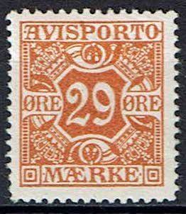 Danmark ustemplet avisportomærke nr 2, Afa 250,-