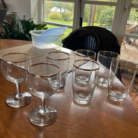 Glas, Snapseglas, ølglas, Holmegaard, Glas med fin guldkant. Ølpokaler kr. 50,- stk. og snapseglas kr. 25,- stk. Samlet kr. 500,-.