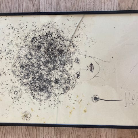 Skønt dansk signeret vintage billede - monotypi fra 1971/1972 NB STYKPRIS