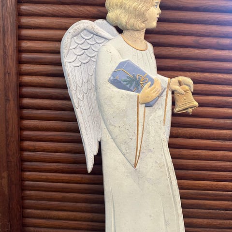 Crepe engel, Smuk engel i crepe m dresdenvinger og knapper fra Tyskland omkring 1900