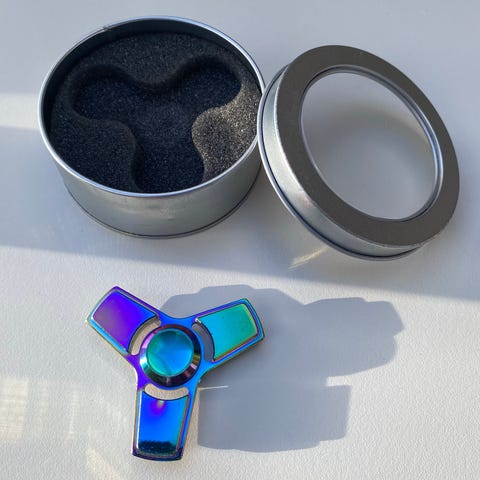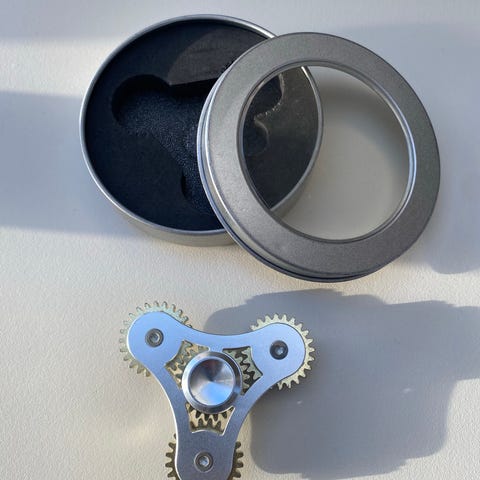 Andet legetøj, Fidget spinner, Trekantet Fidget spinner / fingerspids gyro i metal - inkl. æske.