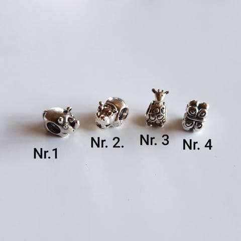 Pandora sølv charms sælges for 100 kr pr stk, 1 spøgelse, 1 fisk, 1 flodhest og 1 næstehorn, eller alle sammen for 300 kr.