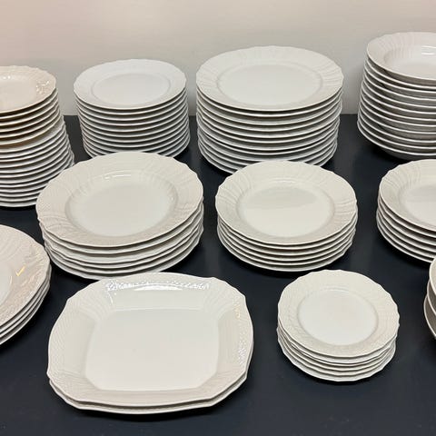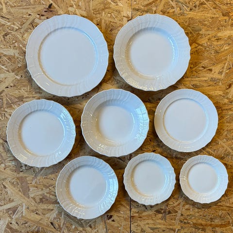 Royal Copenhagen Josephine stel - hvidt med guldkant. Alle dele er uden skår, 1. sortering. Yderst velholdt. Fra kr. 100 pr. del. Kan afhentes i Vallensbæk, eller i Valby efter aftale. Sendes ikke.