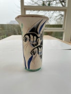 Vase, Kan sendes. Smuk vase med fisk., Eslau, Signeret Nethe. Ca. 1955. Lavet af keramiker Agnete Sørensen. Klare farver. Højde 17,5 cm. Enkelte små nips i glasuren. Kan sendes. Mobile pay.