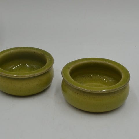 Tre saltkar i stentøj med blå glasur. Sandsynligvis formgivet af Nils Kähler. Mærket "HAK Denmark". Diameter: 6,5 cm. Højde: 2,7 cm. Fremstår i pæn og intakt stand.