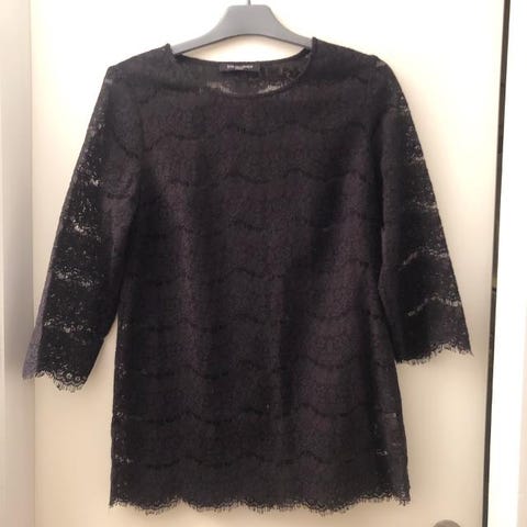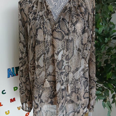 Bluse, ILSE JACOBSEN, str. 38, Lyseblå/flødefarvet, Tror det er bomuld, God men brugt, Blusen måler 118 cm over brystet og er 74 cm lang. Der er 2 slidser i siderne. Strikbluse med rullekrave. Fra dyrefrit ikke-ryger hjem