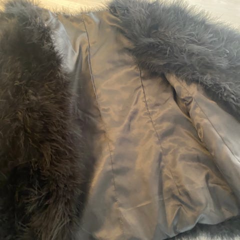 Fjerpels fra Anna Scholz London, sort, som ny. Pelsen har et quiltet foer. Lukkes med hægter foran.