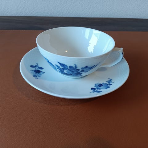 Porcelæn, Tekop, Royal copenhagen, Kantet blå blomst