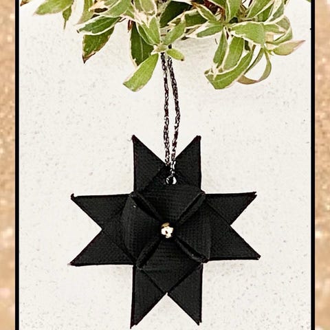 Råhvide stjerner, Smukke råhvide lamel stjerner med struktur samt matchende satinbånd i til ophæng...og perle i midten af stjernen hvis det ønskes