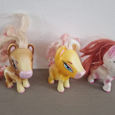 Ældre Legetøj Samlinger Samleobjekter Pigelegetøj Pige Legetøj Babylegetøj Baby Legetøj 4 stk fine brugte Farvede Ponyer
