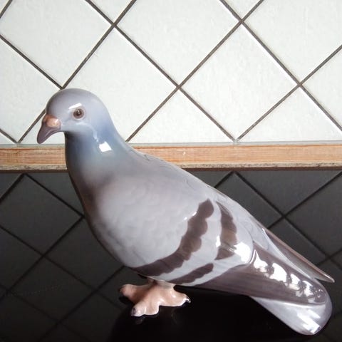 Due - Figur 2540, Bing og Grøndahl, Smuk figur af en due med halen sænket fra Bing og Grøndahl.