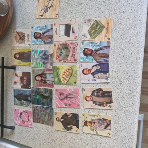 Komplet kortspil med pinupbilleder. Der er billeder på alle kortene, og alle billederne er forskellige. Det ene hjørne er klippet af på alle kortene.