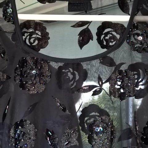 Cocktailkjole, Ukendt, str. M, Sort med perler, Blomde, Næsten som ny, Stort set ikke brugt ??