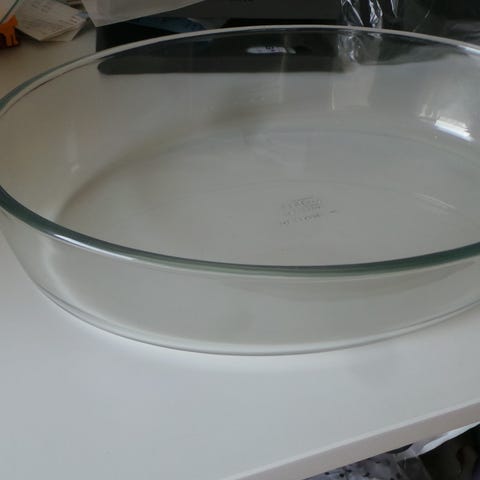 Ovnfast fad, Pyrex, Rundt Pyrex fad med låg i glas, brugt få gange og ser ud som nyt. Diameter i bunden 24 cm