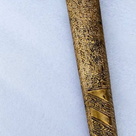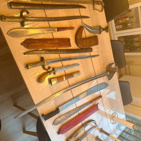 - bl.a. 3 sabler, dolk, bue og pile mv.