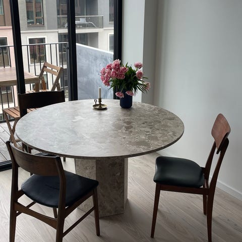 Spisebord m/stole, Marmor / Nikkel, Knoll, b: 152, Ikoniske Knoll Platner Stole med tilhørende Platner bord Ø152 med Calacatta bordplade i mat Marmor. Bord og stole er 1 år gamle og står uden slidtage og mærker. Sælges grundet flytning. Prisen er for 6 stole og bord. Nypris: 270.000. Sælges kun samlet