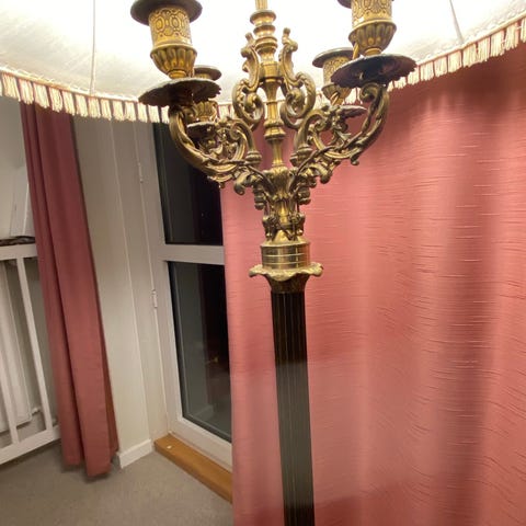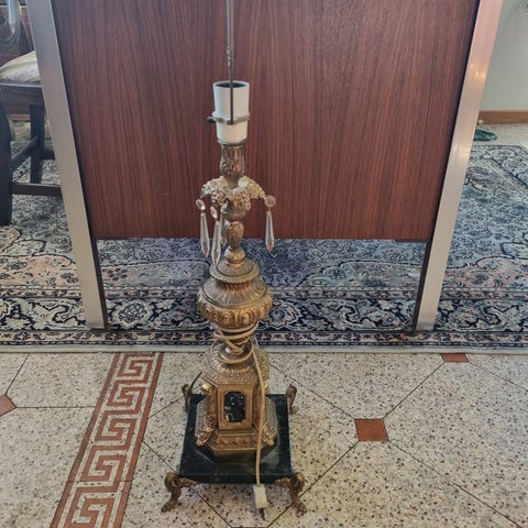 Antik gulvlampe, Messing og marmor, 100 år gl.