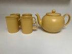 Porcelæn, Tepotte med krus, Pristine England, Super fin engelsk tepotte inklusiv 4 tilhørende krus. Porcelæn med gul glasur. Fremstår i fin stand. Tepotte dia ca. 16 cm. Højde ca. 15 cm. Krus højde 10cm, dia ca. 8cm.