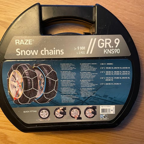 Indeholder: 2 stk. snekæder, monteringsvejledning og handsker.