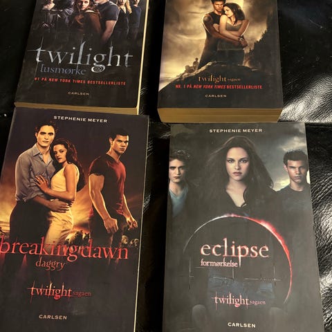 Twilight serien, Stephenie Meyer, genre: fantasy, Hele serien + Bree Tanners korte liv efter døden, som nye. Sælges kun samlet.