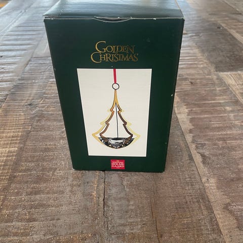 Flot forgyldt ophæng med dråber og en rød glaskugle i midten. Fremstår ubrugt i original emballage. Årets juleophæng 2006 fra Holmegaard designet af Dorthe og Peter Svarrer. Jeg sender gerne godt indpakket mod betaling af porto kr. 50.