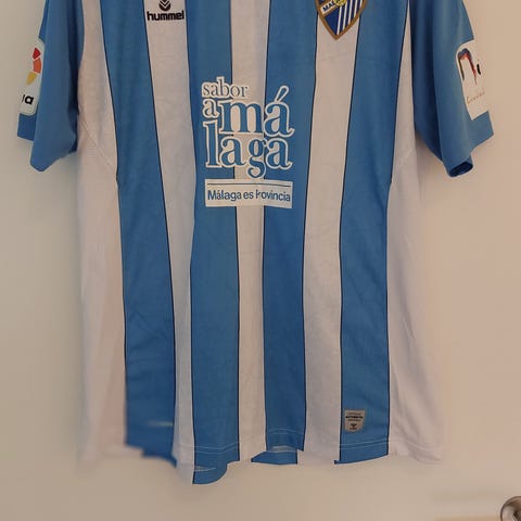 Fodboldtrøje, Malaga C.F. fodboldtrøje 17/18 hjemme , Nike, str. 12-13 år, Brugt én gang, men har få små pletter som det ses på foto. Str. 147-158cm, 12-13 år