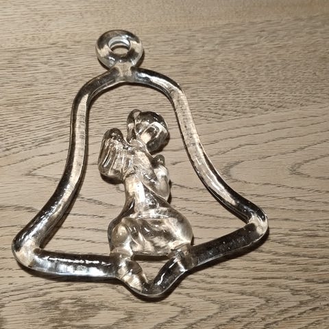Flot og stort glasophæng med hjerte i en krans. Ophænget er i massivt glas, designet af Bertil Vallien for Kosta Boda. Det fremstår i flot og hel stand. Jeg sender gerne godt indpakket mod betaling af porto kr. 50.