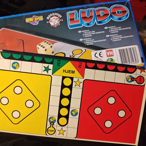 Ludo , brætspil, I træ, mål klappet sammen ca. 13x7cm, rejseformat. Intakt.