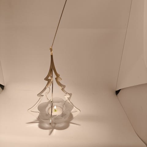 Flot forgyldt ophæng af iskrystal med rød glaskugle i midten. Fremstår ubrugt i original emballage. Årets ophæng 2005 fra Holmegaard. Jeg sender gerne godt indpakket mod betaling af porto kr. 50.