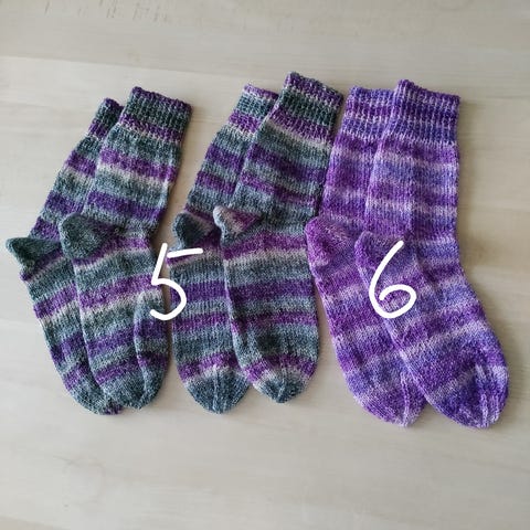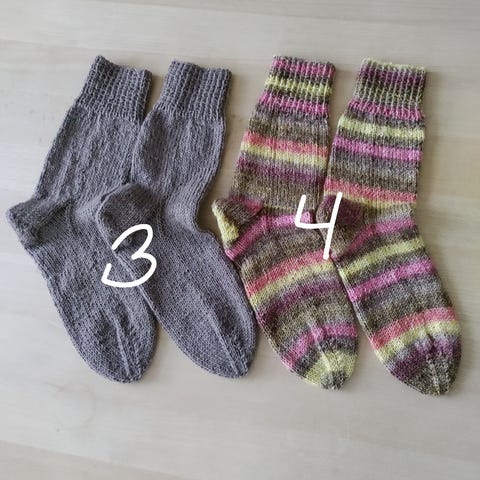 Strømper, Uld hjemmestrikkede, str. 36/37, Ubrugt, Alle par er håndstrikket i strømpegarn med uld (75%) og kan maskinvaskes på uldprogram. Passer str 36 - 37. Det er garnet (på de fleste par), der selv skifter farve. Prisen er pr par. Se også gerne mine andre annoncer (bl.a også strømper i andre størrelser).