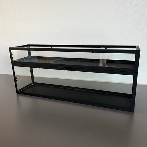 Fremstillet i kraftig glas og med stativ i jern