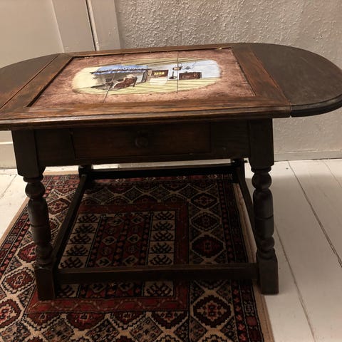 Vintage sofabord med kakler. Med patina. Initialer måske CA? Revne i et par enkelte kalker