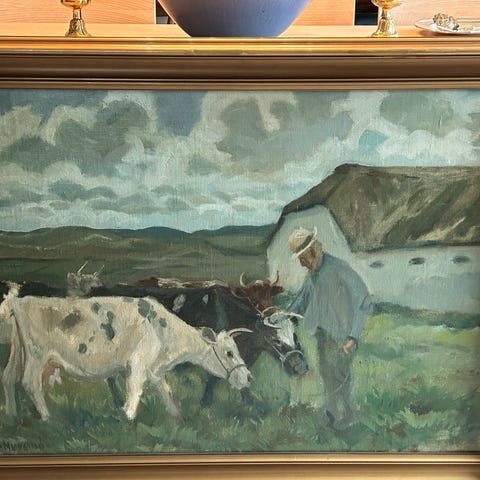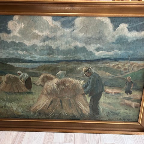 Oliemaleri, stil: Modernisme, b: 65 h: 45, Anders Hune. Køerne føres på marken. Olie på lærred. Signeret Anders Hune. Charlottenborg, Forår. 1926-35, Nordjysk Udstilling, Aalborg 1933, Kunst- og Erhvervsudsilling, ,Aarhus 1938-39, Jyderne, samme sted 1939-42, Nordjyderne, Aalborg 1947- 50, Vrå-udstillingen 1952, Jylland, Göteborg 1963, Aalborg-malere 1978. Separatudstillinger: Aarhus Kunstforening 1949, Ålborg Kunstforeing. 1949, 195,; Den frie Udstillings Bygning 1954, 1959, Billedsamlingen i Frejlev 1962.