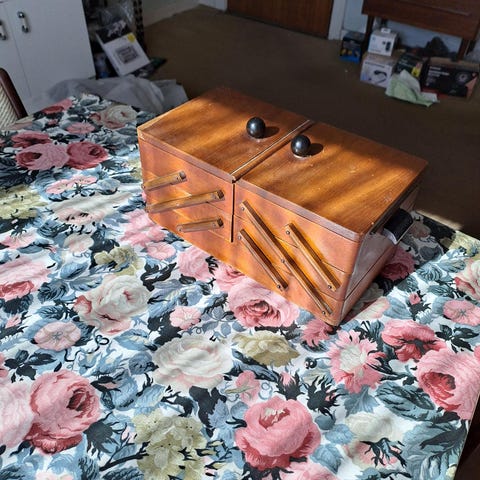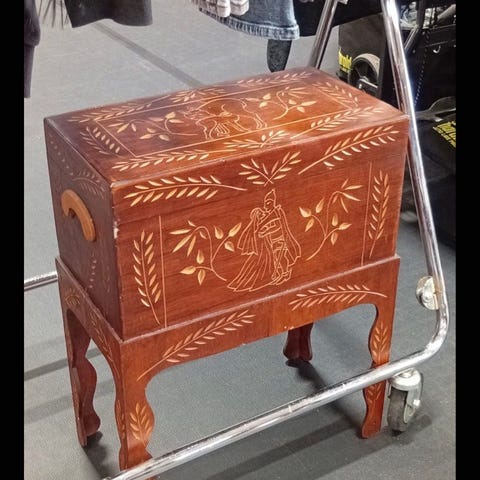 Syskrin, Træ, Gammelt syskrin (kiste) i træ .