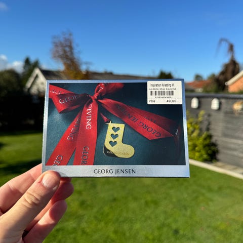 Christmas Sock / gift tag, Georg Jensen - Æske med 3 gift tag - Christmas sock with hearts. Aldrig brugt. Kan bruges som gave vedhæng eller pynt på juletræet. Udført i messing forgyldt med 24 karat guld.