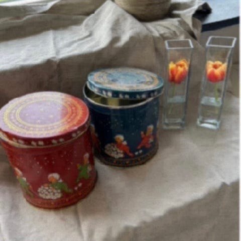 Dåser, 2 flotte juledåser rød og blå, Gamle