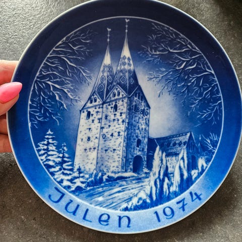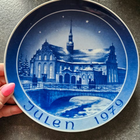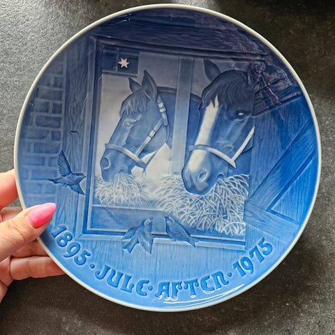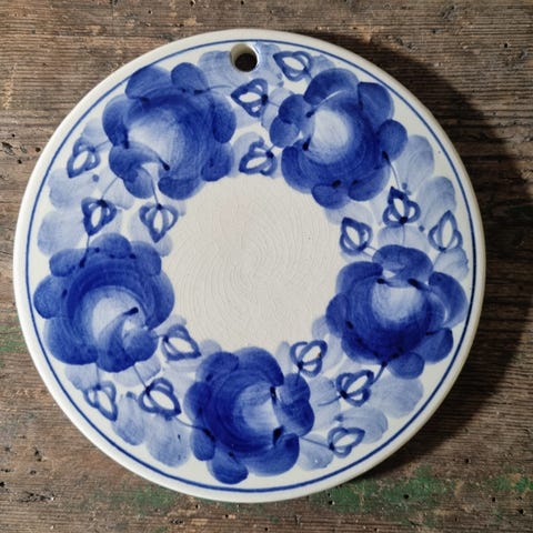 Keramik, Platte, Håndmalet flad tallerken med blank glasur. Ø 22 cm. og i perfekt stand.