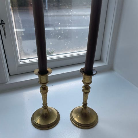 Sælger disse 3 X 2 messingfarvet lysestager, da jeg ikke får dem brugt.